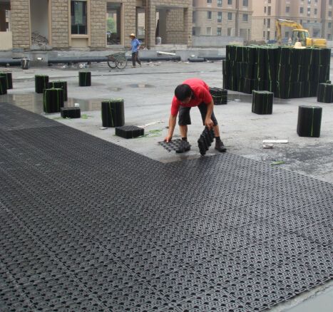 蓄排水板是用PE注塑而成,是集排水、蓄水功能于一體的新型土工材料,同時具備了蓄水、排水、透氣、保濕、隔熱、防止植物根莖破壞混凝土結構等多種功能。結合土工布一起使用,可以避免細微顆粒堵塞蓄水槽和排水通道,保持排水暢通和空氣流通,被廣泛應用于園林綠化工程中。